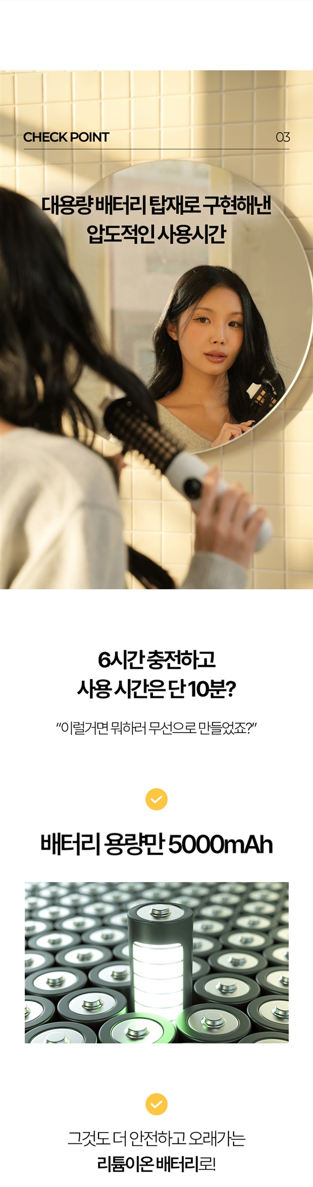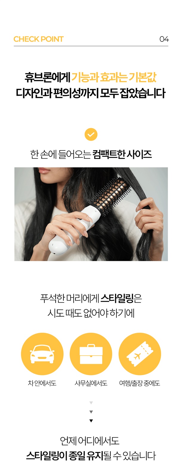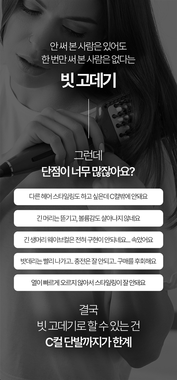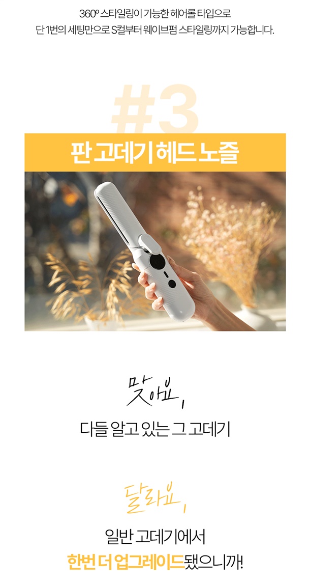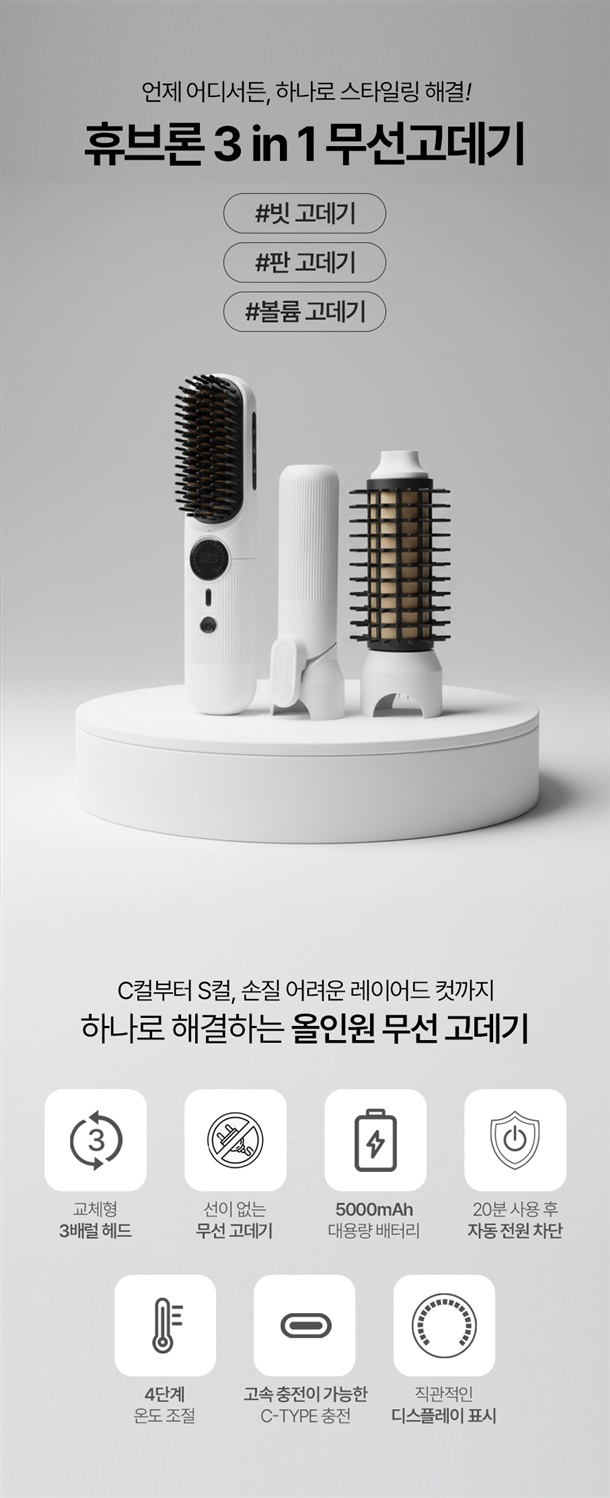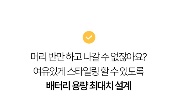 언제 어디서든 3분이면 세팅 완료! 번거로운 선 없이, 헤드만 갈아 끼우면 스트레이트부터 풍성한 볼륨까지 하나로 끝나요!